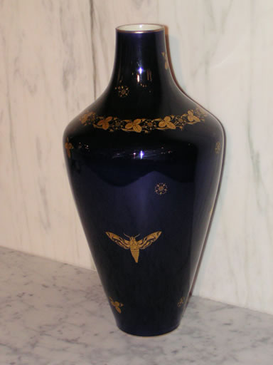 Serves Vase, unusual blue and beautiful gilt moth motif. |